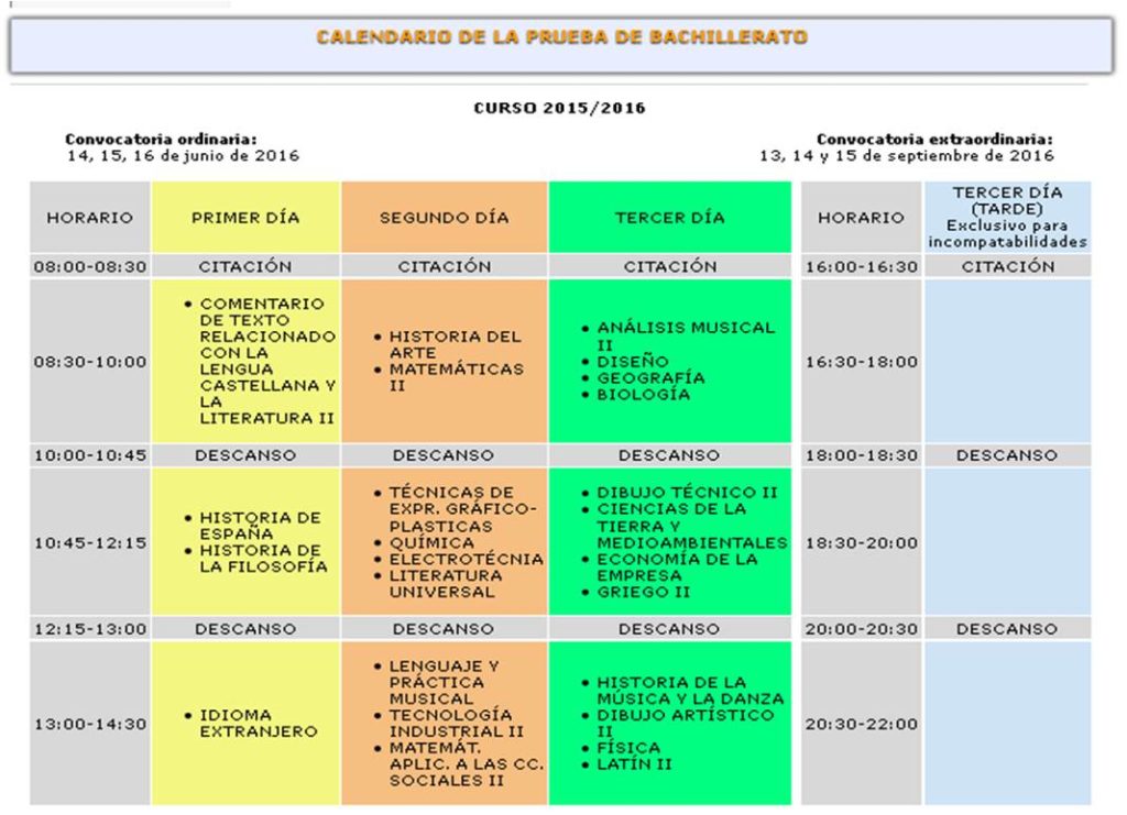 Los días 14, 15 y 16 de Junio tendrán lugar las Pruebas de Acceso a la Universidad en nuestra comunidad autónoma. Como en años anteriores, nuestro Centro constituirá una sede para la realización de dichas pruebas. Os adjuntamos calendario de las mismas.